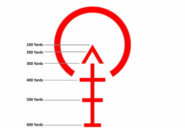 - Illuminated BDC Reticle for 5.56 NATO, with holdovers out to 600 yards