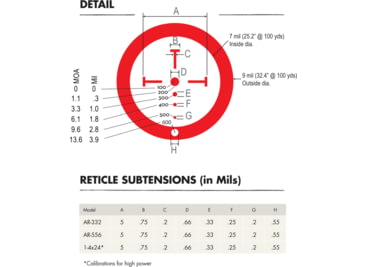 Specifications for Burris AR-332 3x-32mm Tube Tactical Prism Red Dot Sight: