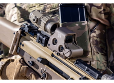 EOTech EXPS3 Extreme XPS Holosight allows for an elevated level of precision in short to medium range tactical environments like never before. The EXPS3 from EOTech delivers two eyes open shooting ability plus a 7mm raised base for iron sight access. The EOTech EXPS-3 features easily adjustable side buttons with a single, quick release throw lever to easily attach or remove the red dot sight. The Extreme XPS or EXPS also has a transverse mount lithium 123 battery for a short sight length. With EO-Tech red dot sight reliability, you get rugged construction packed with premium optical quality.