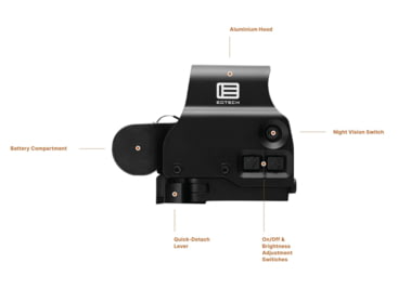 The EOTech EXPS 3 HWS requires 2 3/4 inches of rail space at most thanks to a shortened base. The waterproof and fogproof design will withstand tough environments and perform in any tactical environment. Plus with the average battery life being between 500 to 600 hours, you can be sure the E XPS 3 is ready for action at any moment.