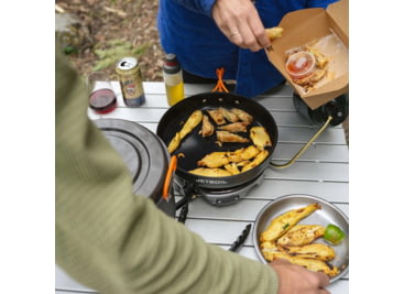 You don't compromise on your trail choice and now with the revolutionary Genesis base camp system you don't have to compromise your dinner either. The eco-friendly ceramic non-stick Fry Pan complements the unparalleled simmer control to sizzle bacon and saute perfect eggs while the FluxRing-equipped 5 Liter pot/lid is unmatched for quickly and efficiently boiling water for spaghetti and meatballs. The convenient nesting stove and cookware provide a compact cooking system capable of fueling the most demanding crew before and after your most rewarding adventures.![]()