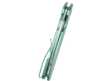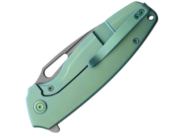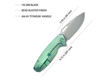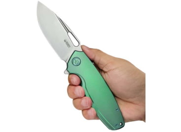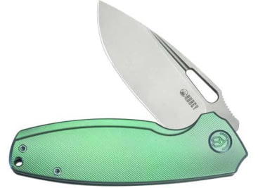 Kubey Tityus Green Ti Folding Knife, 4.75in Closed, 3.38in Bead Blast 14C28N Sandvik SS Blade, Green Textured Titanium Handle, KB360B