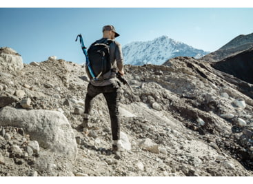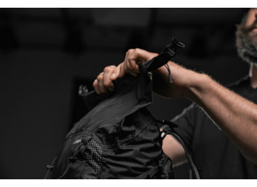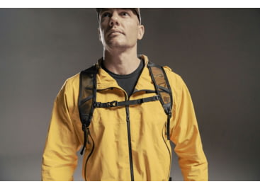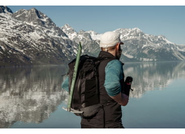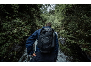 ALPINE INSPIRED CARRY HARNESS - Contoured monomesh shoulder straps distribute weight evenly while the sternum strap, removable hip belt, and load lifters yield an agile, customized fit.