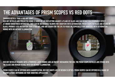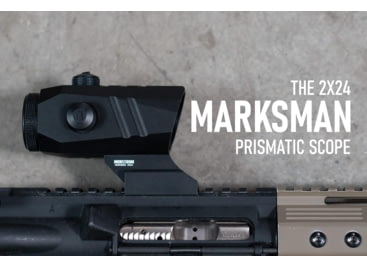 The Monstrum Marksman Ultracompakt Micro Prism Scope is a prism scope optic with a fixed magnification - available in 2x, 3x, and 5x magnifications. It comes with our all-new Ultracompakt prism optic assembly making it shorter and lighter than previous generation prism optics. Why choose a prism scope over a red dot sight? Sharper reticle than a red dot sight Red dot reticles are projected using a laser reflecting against a plane of glass and can result in a starburst effect at higher brightness intensities. They can be notoriously blurry for shooters with astigmatism. Prism scope reticles are etched in glass, produces less distortion than a red dot, and are easier for the eye to focus on, especially for shooters with astigmatism. Works with or without illumination Red dot reticles require both a powered laser source and an on/off mechanism. This makes them susceptible to running out of battery power or to malfunction. The prism scope reticles are etched into the glass and remain visible with or without illumination. Prism scopes can be offered with magnification Red dot sights are by design 1x optics. Prism scopes can be offered in a range of magnifications depending on your shooting needs. The Marksman Ultracompakt is built atop our all-new Ultracompakt prism optic assembly - 27% shorter and 23% lighter than our previous generation prism scopes.![]()