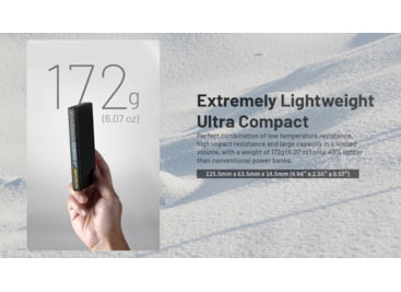 The Summit 10000 power bank combines the lightweight and steady carbon fiber frame with an innovative low temperature resistance at -40 C/F. Normal power banks drop efficiency significantly in cold climates. Summit 10000 can still charge a modern smartphone two times over on top of Mount Everest. The Summit 10000 comes with dual ports, a QC PD USB-C port that can fast charge the power bank or quick charge other devices at 18W and 20W respectively, as well as a USB-A QC output port to charge others. The Nitecore Summit 10000 is built with a unibody carbon fiber shell making it steady and extremely lightweight at only 6.07 ounces. The seamless design is not only 1.5 meters impact resistant, but also IPx5-rated water resistant ready for outdoor use. Summit 10000s intelligent heating function automatically kicks in when the temperature is below the freezing point. The heating function consumes ultra low power while keeping the power bank at an appropriate temperature to avoid loss of power or efficiency in cold climates.![]()