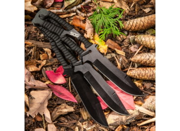 SOG Specialty Knives & Tools Throwing Knives w/Nylon Sheath, 3-Pack, Stamped, 4.4in, 420 Stainless Blade, Black, Glass-Reinforced Nylon Handle, SOG-F041TN-CP