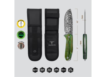 Crafted for durability and style, this fixed blade knife features a 3cr13 stainless steel blade with a stunning Damascus acid-etched finish. The ergonomic handle is wrapped with 550lb paracord for a secure, comfortable grip, emergency survival uses in tough conditions. A rugged premium 1680D Nylon Sheath ensures safe storage, easy portability and MOLLE compatible, making this knife an essential tool for outdoor adventures, survival, or everyday use.![]()