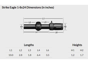 Specifications for Vortex Strike Eagle 1-8x24mm 30mm Tube Second Focal Plane Rifle Scope: