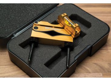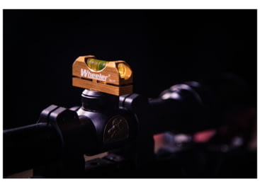 The Barrel Clamp Level is attached to the guns barrel while the smaller Reference Level is placed on scope base, bottom half of a ring or other flat surface perpendicular to the vertical axis of the gun. The gun is then rotated until the Reference Level is aligned. The tuning adjustment knob on the Barrel Clamp Level is then turned until its level is centered to match the Reference Level. At this point the Barrel Clamp Level is calibrated to the guns axis. The Scope can be installed loosely and the Reference Level placed on top of the scopes turret cap. The scope is rotated until the Reference Level is aligned with the Barrel Clamp Level and then simply secured in place. The Wheeler PRLS is the most effective instrument available for precision scope alignment.